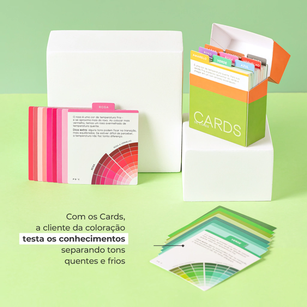 Depois da explicação com o Círculo Cromático PS Estilo, complemente a experiência da coloração pessoal com os Cards de Cores.